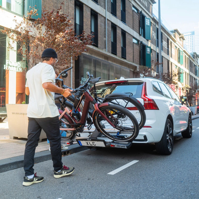 Almada Work-E VC-C07 è un portabici pieghevole XLC che si fissa al gancio di traino. Le ampie guide per le ruote sono progettate per le (e-)MTB più grandi, in modo da poter trasportare senza problemi due biciclette di dimensioni diverse. Almada Work-E offre la possibilità di eseguire piccole riparazioni e rapidi lavori di manutenzione in movimento grazie al supporto di montaggio integrato. Le pinze per biciclette sono adatte a tutti i materiali dei telai, compresi quelli in carbonio full. Grazie al Modular Rail System (MRS), sul portabici possono essere installati vari accessori, come un MRS Rail Lock XLC aggiuntivo, per aumentare la sicurezza. Inoltre, la rampa di accesso e l’adattatore per il telaio sono disponibili separatamente: Ciò significa che anche le biciclette low step possono beneficiare delle caratteristiche di Almada Work-E. Particolarmente degna di nota è la facilità e la rapidità di installazione. Il portabici può essere ripiegato a misura di bagaglio e può essere piegato anche con le biciclette montate, in modo da poter accedere facilmente al bagagliaio in qualsiasi momento. Almada Work-E VC-C07 è un portabici stabile e affidabile, dotato di funzioni di sicurezza aggiuntive che ti permetteranno di portare con te la tua amata bicicletta ovunque tu debba andare, senza preoccupazioni.